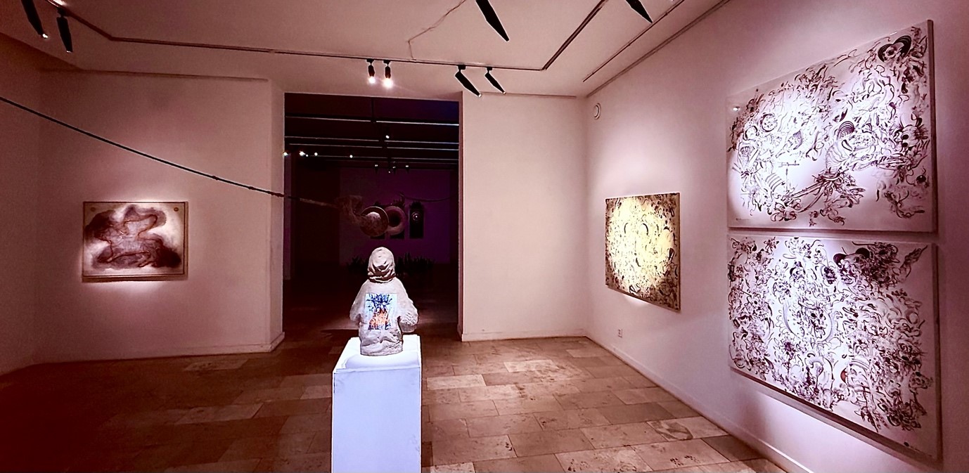 Үзэсгэлэнгийн танхимыг гэгээлэг болон бүрэнхий гэсэн хоёр өөр орчинд хувааж, орон зайн зохиомжийг бүтээлийн утга агуулгатай уялдуулсан нь тун өвөрмөц шийдэл болжээ. Гэрэлтүүлэг сайтай танхимд өрөг урлаг болон ланд артын бүтээлүүд голчилж, үзэгчдийн мэлмийг баясгаж байна. Тухайлбал, З.Уянга зураачийн “Цэцгийн бүжиг” график цуврал болон Э.Тогтууны “Зээлийн хүү” бүтээлүүд нийгмийн эмзэг сэдвийг хүүхдийн харцаар дамжуулан ёгтлон харуулсан нь олны анхаарлыг татаж байв. Түүнчлэн МУУГЗ С.Дагвадоржийн “Карма” бүтээл нь ахмад үеийнхэн шинэ үеийн урлагийн хэллэгийг хэрхэн гүн гүнзгий илэрхийлж болдгийн тод жишээ болжээ.