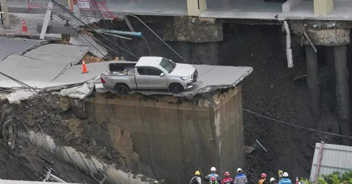 Таиландын нийслэл Бангкокт авто зам нурж, 50 метрийн гүн, 900 м² талбай бүхий том воронка бий болжээ. Аз болоход хүний амь үрэгдээгүй гэж Reuters мэдээлэв.