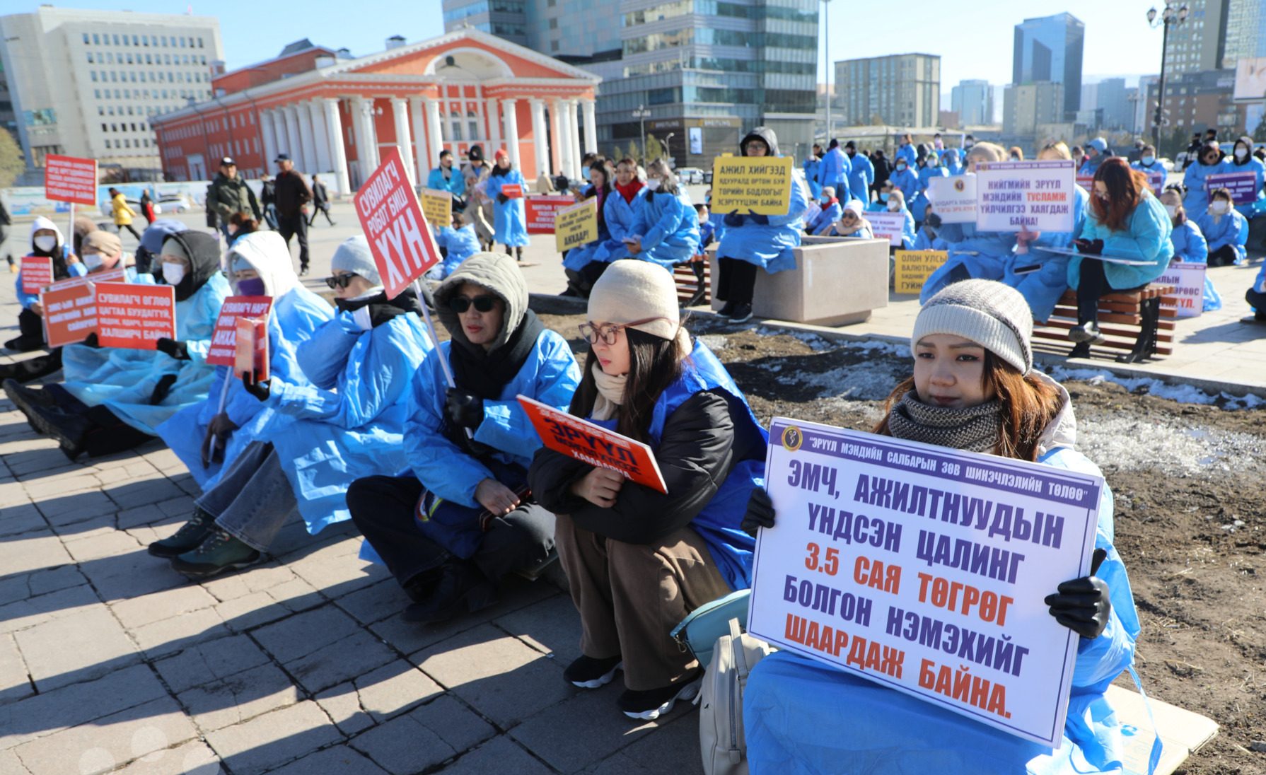 Улаанбаатар хот энэ шөнө -4 хэмийн жиндүү хүйтэнтэй угтаж байгаа ч эрүүл мэндийн салбарынхан шаардлагаа хүргэхийн тулд гадаа хонож, суулт хийхээр шийджээ. Тэд Төв талбайд цугларч, үндсэн цалингаа 3.5 сая төгрөгт хүргэхийг шаардан суулт зарласан бөгөөд шаардлагыг биелүүлэхгүй бол Пүрэв гарагт бүх нийтийн ажил хаялт хийхээ мэдэгдсэн байна.