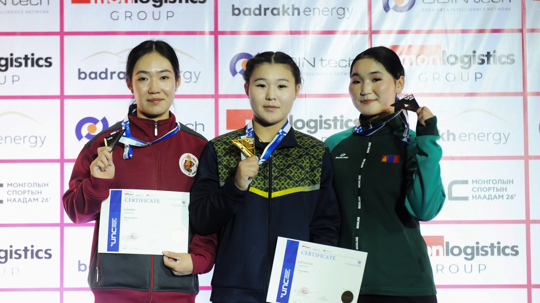 - Эмэгтэй 63 кг: ОУХМ Б.Хонгорзул (Алдар) жиндээ тэргүүлж, СДМ Н.Энхжин (Алдар), СДМ М.Доржхандмаа (Өв хүч) нар медалийн тавцанд гарлаа.