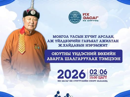 Увс аймгийн Зүүнговь сумаас төрөн гарсан хүчит бөх, Аж үйлдвэрийн гавьяат ажилтан, Улсын арслан Ж.Хайдавын нэрэмжит оюутны аварга шалгаруулах үндэсний бөхийн барилдаан удахгүй болно. Энэхүү спортын арга хэмжээг “Их засаг” олон улсын их сургуулийн зааланд ирэх хоёрдугаар сарын 6-ны өдөр зохион байгуулахаар тов гаргасан байна.